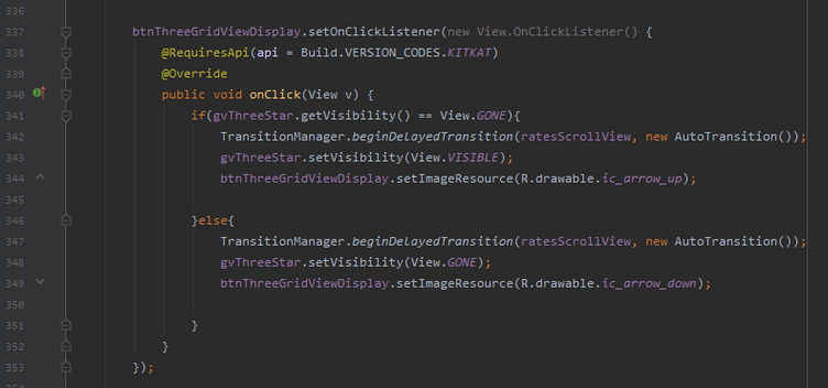 To the right, is the custom GridAdapter used to link the layout to the GridView. Some things to note here would be the use of the Glide API as the image stored in the database is really just a link to the actual image online. An added bonus to this API is also being able to display the images in a circular frame rather than having to create a layout for that myself.