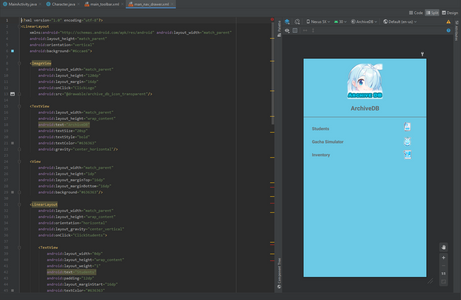 After that massive headache was over and done with, I could finally begin working on the actual application. The first thing I did was add a Navigation Drawer to my application. For that I followed an online tutorial that will be linked below.